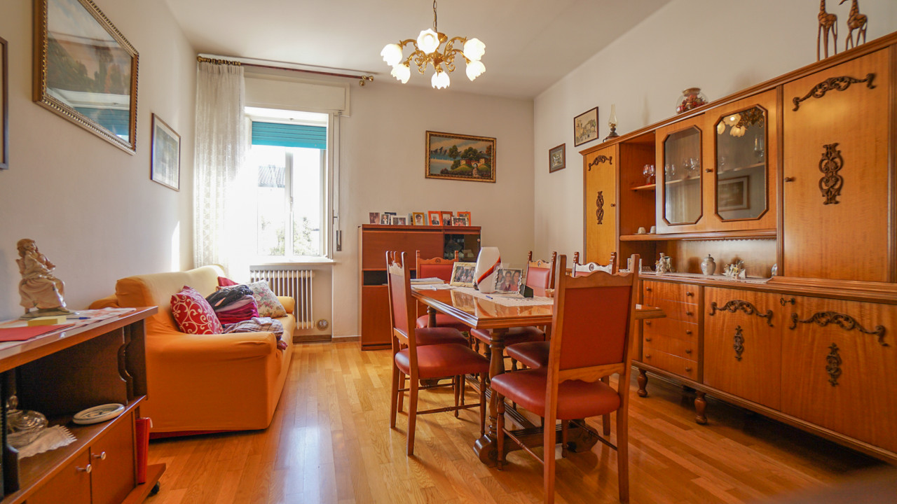 L’appartamento è composto da ingresso su una luminosa zona giorno che integra soggiorno e cucinotto separato ma comunicante grazie ad un’ampia apertura. La zona notte comprende due camere da letto ben dimensionate e un bagno finestrato funzionale.