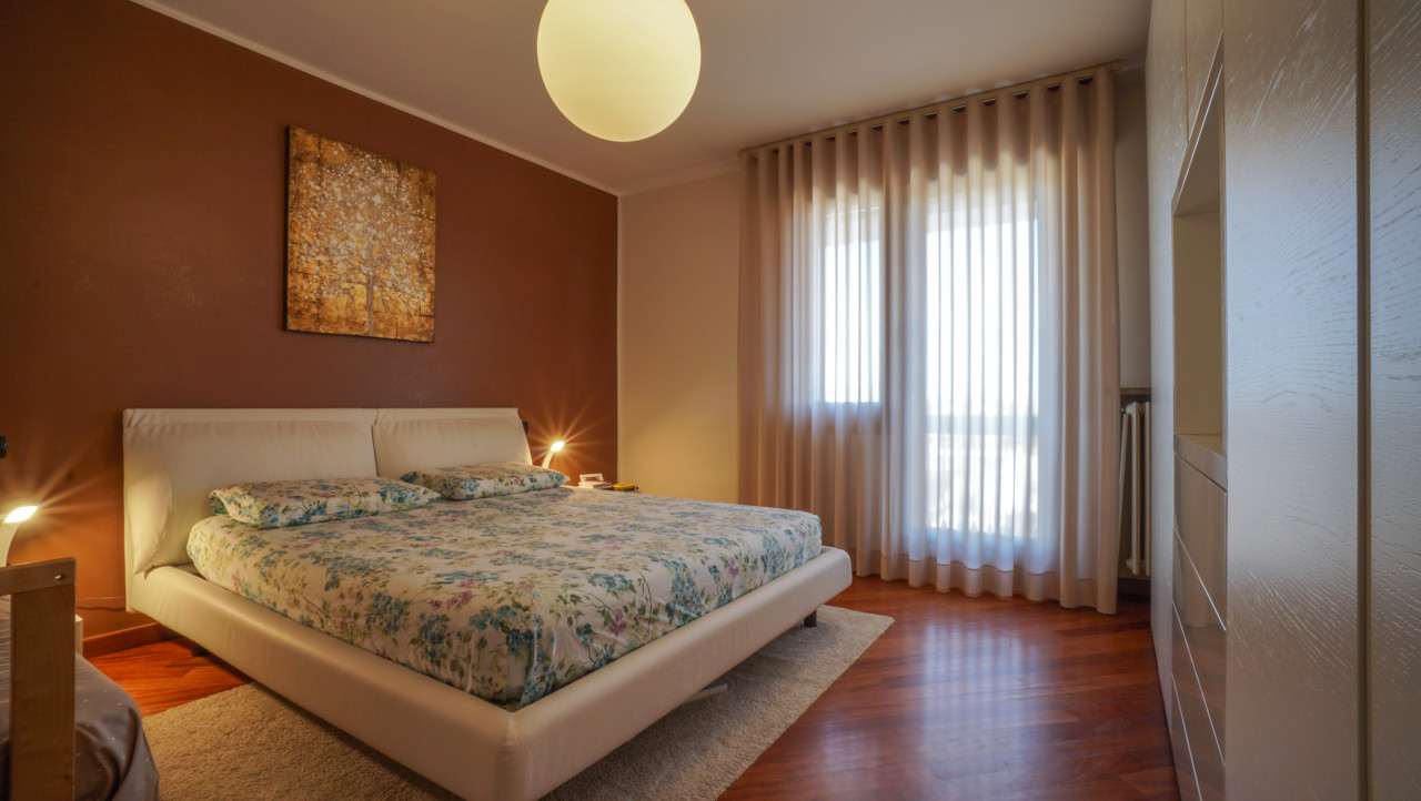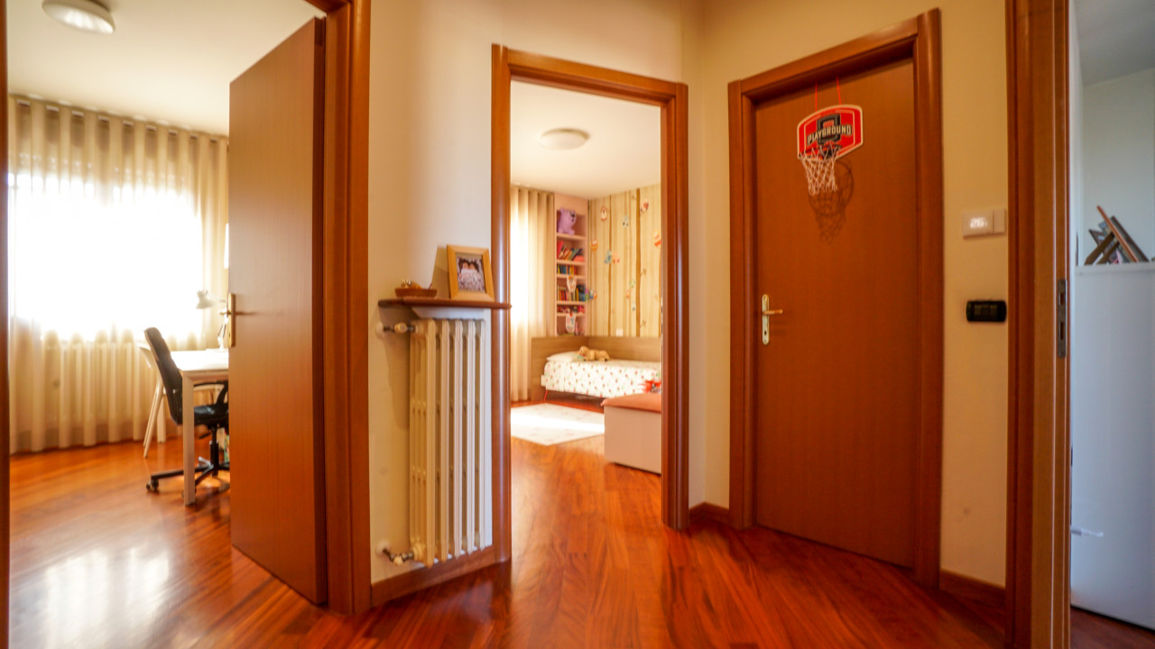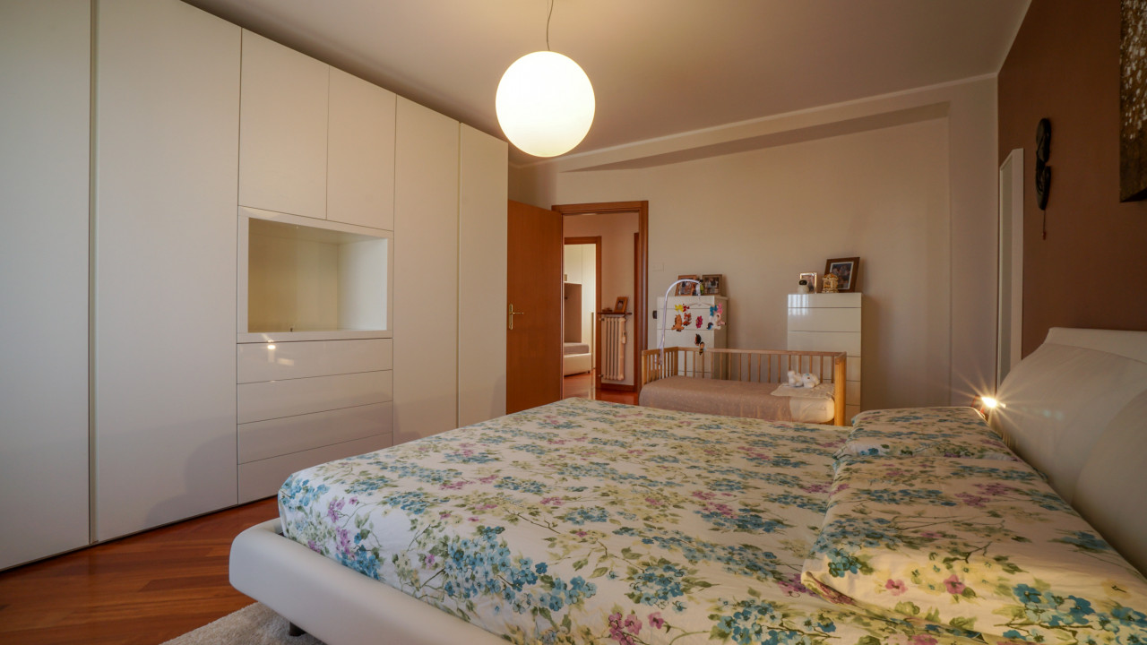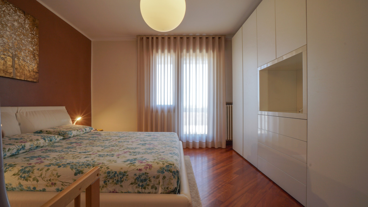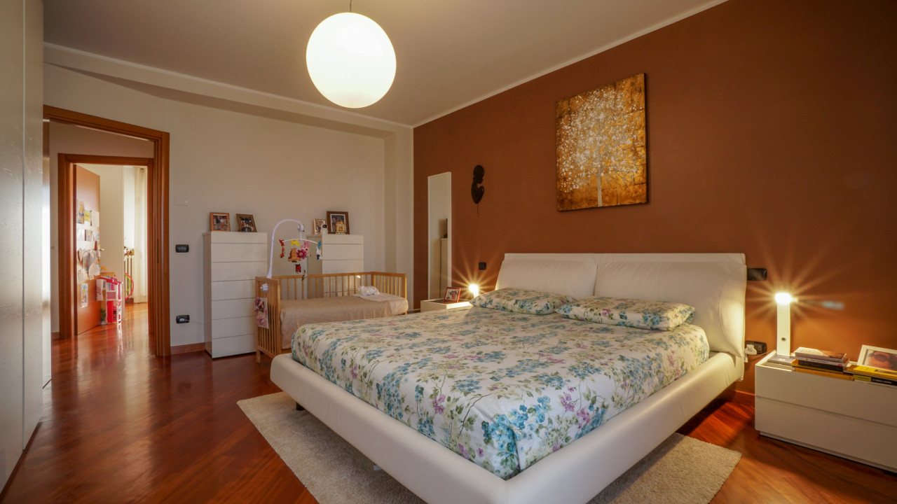 Gli ampi spazi interni sono progettati per garantire comfort e funzionalità e sono stati ottimizzati per sfruttare la luce naturale durante tutto il giorno, creando così un'atmosfera accogliente. L'appartamento si apre con un ingresso che conduce ad un soggiorno spazioso composto da salotto e tavolo da pranzo, separato dalla cucina. Nel reparto notte sono presenti due spaziose camere da letto, un bagno completo finestrato, una stanza ad uso studio/camera e un ripostigio.